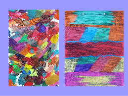 Actividad 2. práctica en tu cuaderno de dibujo la técnica grattage. pinta de varios colores la hoja con colores de cera o crayones después cúbrela con pintura acrílica negra, deja secar la hoja y cuando este lista utiliza un palillo dental u otros objetos de punta para crear una imagen quitando según lo necesites la capa de pintura negra.